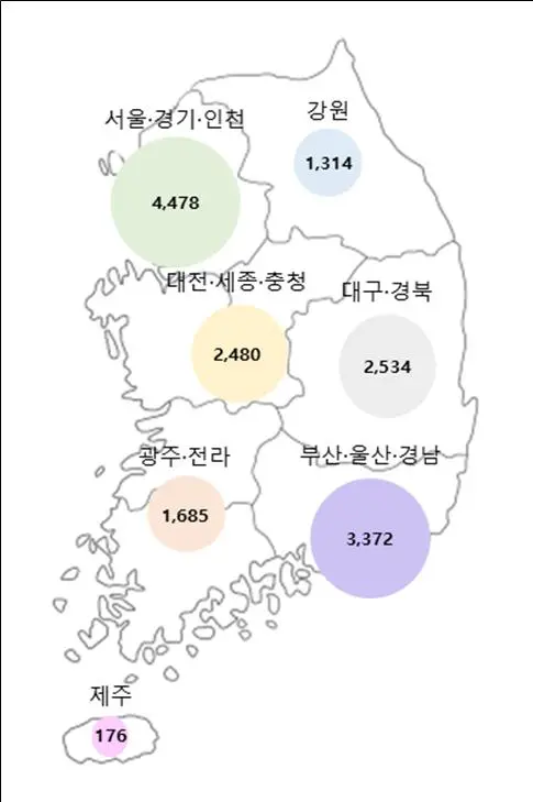 서울·경기·인천 대전·세종·충청 광주·전라 대구·경북 부산·울산·경남 강원 제주