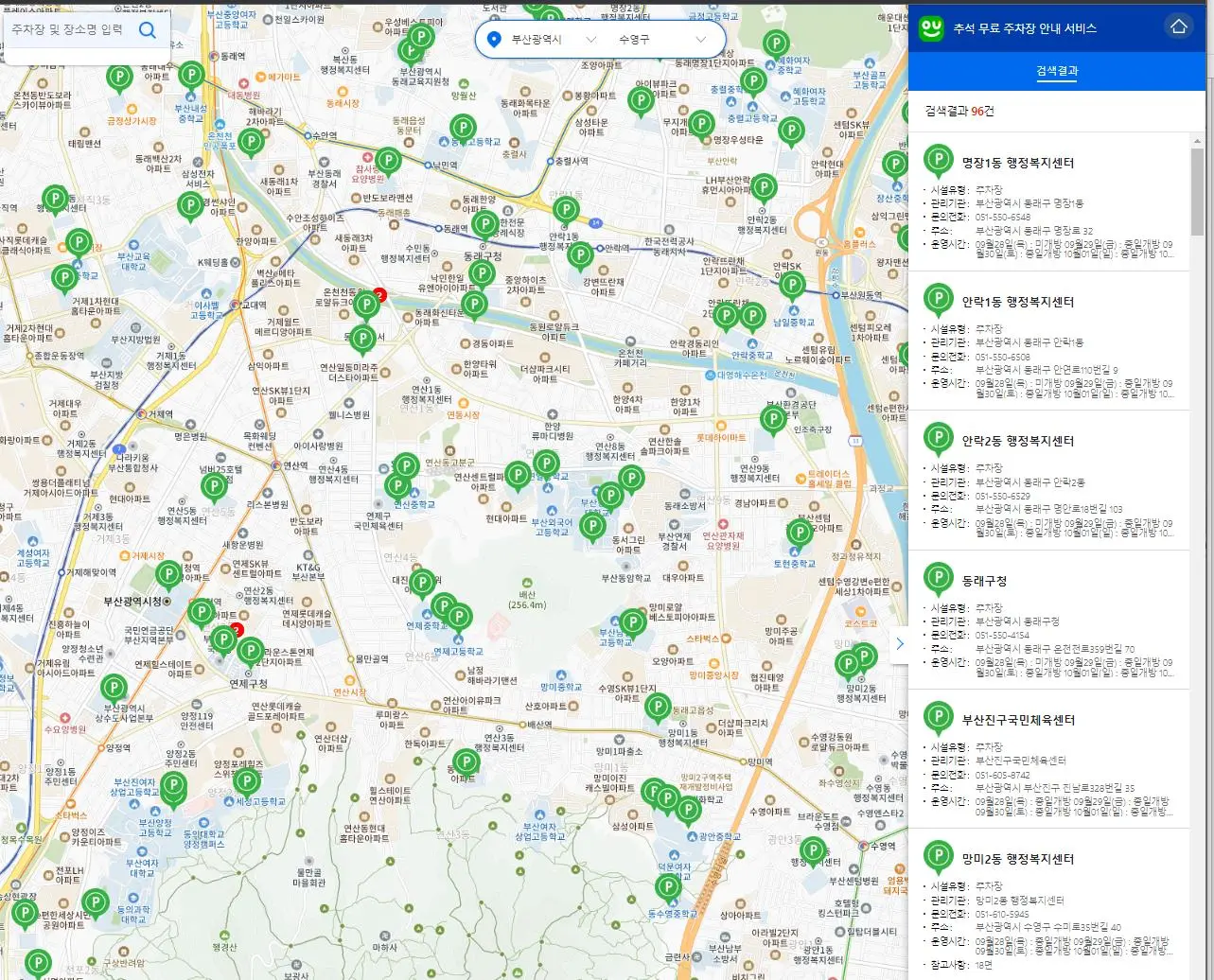 추석 연휴 기간 공유누리와 네이버지도, 카카오맵, 티맵에서 '명절 무료개방 주차장을 검색하여 위치, 일자별 개방 정보 등을 확인하거나 길찾기 서비스(내비게이션)로 이용하실 수 있습니다.